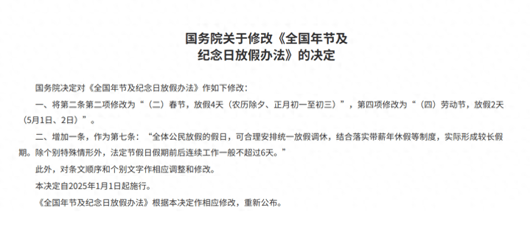 春节假期+1!“五一”假期+1!2025年放假安排来了→