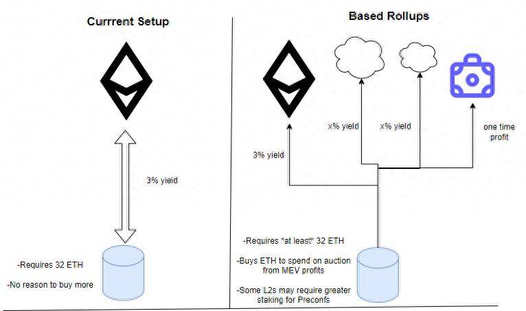 验证者可以选择加入 Based Rollups 流程,从而获得额外奖励。其经济影响是质押ETH 的价值增加,从而可能带来更高的收益