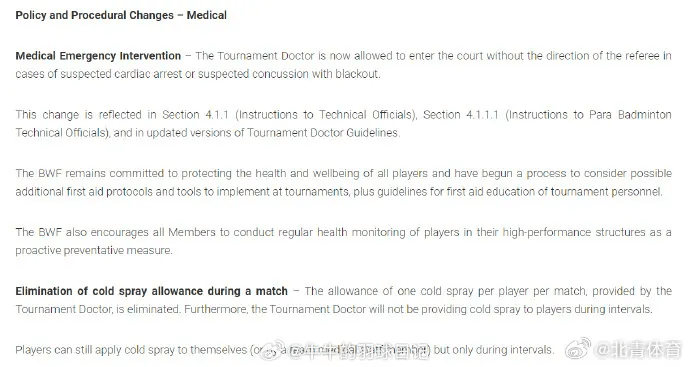 世界羽联新规:医生可直接进赛场