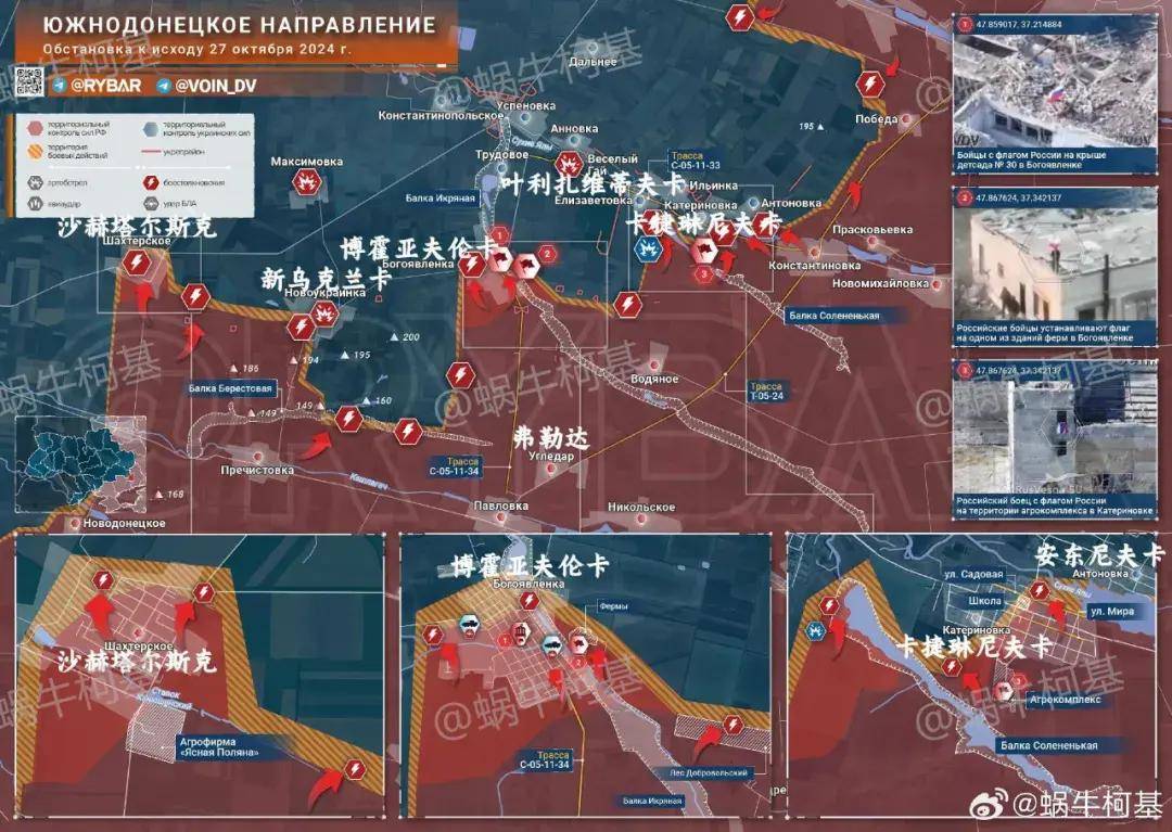 以10月28日日终时分的战局分析,俄军东部军区在南顿涅茨克战役地域,呈现出三个主要战役方向: